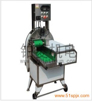 將葉菜類:芹菜、大白菜、高麗菜、菠菜、蔥、大蒜、瓜類等長條狀之物切成片、絲狀,適合食品加工業者配合自動化生產線。特性:機臺骨架均為SUS304不銹鋼材質,經久耐用。出料口處有微動開關,操作安全。可切各種葉菜類。