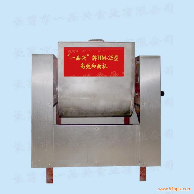 “一品興”牌HM-25型高效和面機,效率高,噪音小,和面均勻一致,面斗內無殘留,性能可靠,專業品質,是面食制品生產企業和商戶首選的和面設備。