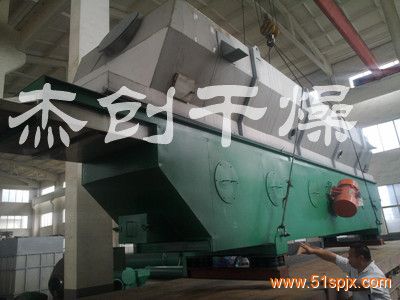 物料自進料口進入機內, 在振動力作用下, 物料沿水平方向拋擲向前連續運動,熱風向上穿過流化床同濕料換熱后, 濕空氣經旋風分離器除塵后由排風口排出, 干燥物料由排料口排出。