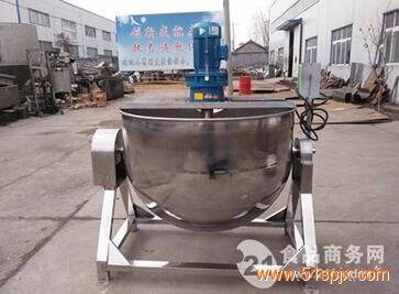 夾層鍋又名立式蒸汽鍋、立式蒸煮鍋、立式夾層蒸汽鍋。通常由鍋體和支腳組成。鍋體是由內外由半球形鍋體+直邊+支架組成的雙層結構形式,中間夾層通入蒸汽加熱。立式夾層鍋具有受熱面積大、熱效率高、加熱均勻、液料沸騰時間短、加熱溫度容易控制、外型美觀、安裝容易、操作方便、安全可靠等特點。立式夾層鍋廣泛應用于各類食品的加工,也可用于大型餐廳或食堂熬湯、燒菜、熬粥等,是食品加工提高質量、縮短時間、改善勞動條件的良好設備。