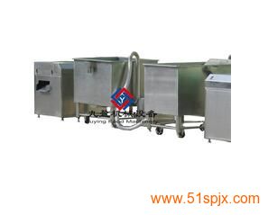 本機適用于小型果蔬加工企業及食堂使用。此機具有結構簡單、體積小、維修方便, 等優點。該機采用不銹鋼制成。該機通過人工投料,利用增氧機使物料在水中翻滾從而達到去除物料表面淀粉的目的。