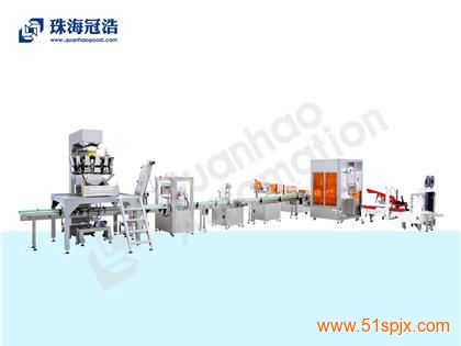 珠海冠浩機械全自動稱重直線式灌裝生產線,主要適用醫藥工廠,食品工廠,化妝品工廠等行業。