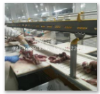 功能:肉排酸后輸送肉料到各加工工位;人工剔骨修割;部分肉精細修割;稱重包裝輸送;周轉箱輸送清洗。