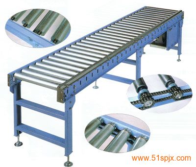 單鏈/雙鏈輥筒輸送機依靠鏈條驅動輥筒來輸送物品,具有輸送能力強,運送貨物量大,輸送靈活等特點,可以實現多種貨物合流和分流的要求。根據生產流水線要求,可制作確動、積放、可調積放等型式。