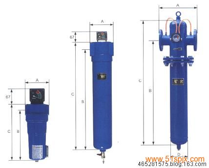 C級(jí)油水分離/過濾器 *第一段由可折洗的不銹鋼網(wǎng)式核心,利用離心力分離10μm或更大的固態(tài)粒子及液體微粒。 *第二段可替換的玻璃纖維完全過濾3μm或更大的固態(tài)粒子及液體微粒,重力作用將水分帶到過濾器底部并排出。 *內(nèi)、外濾芯皆防腐蝕。 *油霧剩余含量5PPm。 T級(jí)管路除塵過濾器 *支撐螺絲,保持濾芯穩(wěn)定不受震蕩。 *多層玻璃纖維及完全過濾1μm或更大的固態(tài)粒子及液體微粒,并具有減低壓降功能。 *多孔式外部圓筒過濾后的空氣由此迅速流至過濾器出口。 *內(nèi)、外濾芯皆防腐蝕。 *油霧剩余含量1PPm。 A級(jí)高效除油過濾器 *支撐螺絲,保持濾芯穩(wěn)定不受震蕩。 *內(nèi)部彈性海綿具有前置過濾功能。 *微玻璃纖維特殊設(shè)計(jì)的密度、直徑及表面處理可過濾0.01μm的固態(tài)粒子及液態(tài)微粒,外部海綿層吸收并排出油霧。 *內(nèi)、外濾芯皆防腐蝕。 *油霧剩余含量0.01PPm。 F級(jí)超高效除油過濾器 *內(nèi)外濾芯皆防腐蝕。 *涂膜封閉式海綿套筒進(jìn)行預(yù)過濾和氣流分散。 *多層矩陣復(fù)合玻璃纖維特殊設(shè)計(jì)的密度,可過濾0.01μm的固態(tài)粒子及液態(tài)微粒。油霧剩余含量0.001PPm。 H級(jí)活性炭除臭過濾器 *內(nèi)外濾芯皆防腐蝕。 *極精細(xì)活性炭粉穩(wěn)定層濾除絕大部分油蒸氣。 *特殊設(shè)計(jì)復(fù)合纖維介質(zhì)粘合微精活性炭粉,濾除0.01μm的固態(tài)粒子及液態(tài)微粒。 *復(fù)合纖維層防止活性炭微粒位移,外涂膜封閉式海綿網(wǎng)筒防止纖維游移。 *在額定運(yùn)行條件下,設(shè)計(jì)壽命達(dá)2000小時(shí)。油霧剩余含量0.003PPm