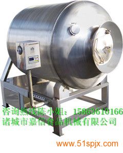 真空滾揉機是在真空狀態下,利用物理沖擊的原理,讓肉在滾筒內上下翻動,相互撞擊、摔打,達到按摩、腌漬作用,使肉均勻的吸收腌漬,提高肉的結著力及產品的彈性;本機具有肺呼吸功能,讓產品在滾筒內膨脹、縮小了往復運動,改善了肉組織的結構,提高了切面效果,增加了出品率?梢栽鰪姳K,改善產品的內部結構。全自動真空滾揉機除具有真空滾揉機的特點外,還具有變頻技術功能。使機器使用更安全、更方便、更加節能高效。該機采用不銹鋼制造,結構緊湊,滾筒兩端均采用旋壓式封帽結構,最大的增加滾筒內的摔打空間,使滾揉產品的效果均勻,噪音小,性能可靠,使用效率更高。