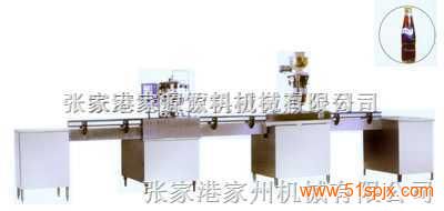 汽水、可樂等含汽飲料自動沖洗、灌裝、封口生產流水線有QS型自動沖瓶機、DY型等壓灌裝機、FXZ型旋蓋機及SSJ型輸送機等系列產品組成。主要關鍵部位采用不銹鋼材料制成。具有結構合理、工藝先進、操作方便、適用范圍廣等特點,是中小型飲料廠家最為理想的生產流水線機組