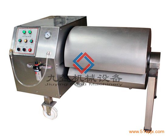是在真空狀態下,利用物理沖擊的原理,讓肉在滾筒內上下翻動,相互撞擊、摔打、達到按摩、腌漬的作用,使肉均勻的吸收腌漬,提高肉的結著力及產品的彈性;本機具有肺呼吸功能,讓產品在滾筒內做膨脹,縮小的往復運動,改善了肉組織的結構,提高了切面效果,增加了出品率。可以增強保水性,改善產品的內部結構。