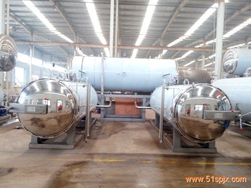 飽和殺菌鍋是逐批式的、無(wú)攪動(dòng)的壓力容器,用于對(duì)包裝在密封容器內(nèi)的食 品進(jìn)行殺菌,通常,把容器堆放或混雜擺放在殺菌架、籠筐、殺菌車、籃筐、殺菌盤中,推入或卸出殺菌鍋,殺菌鍋被稱作臥式鍋殺菌鍋,內(nèi)所用加熱介質(zhì),為蒸汽;