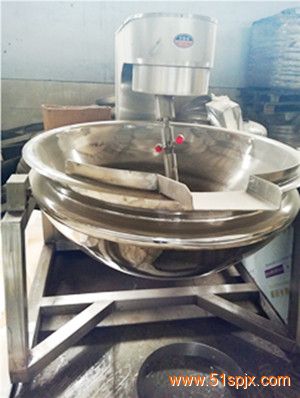 可傾式煮雞夾層鍋 夾層鍋又名蒸汽鍋、蒸煮鍋、夾層蒸汽鍋。通常由鍋體和支腳組成。鍋體是由內外球形鍋體組成的雙層結構形式,中間夾層通入蒸汽加熱。有固定式、可傾式、攪拌式等樣式。夾層鍋具有受熱面積大、熱效率高、加熱均勻、液料沸騰時間短、加熱溫度容易控制、外型美觀、安裝容易、操作方便、安全可靠等特點。夾層鍋廣泛應用于各類食品的加工,也可用于大型餐廳或食堂熬湯、燒菜、燉肉、熬粥等,是食品加工提高質量、縮短時間、改善勞動條件的良好設備。
