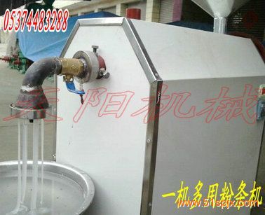 | 粉條機,天陽生產紅薯粉條機,土豆粉條機,天陽機械粉條機,電熱溫控高效益,粗細扁圓均可做,一機多用真神奇。天陽粉條機生產粉條干凈衛生,產品筋道耐煮,歡迎選購天陽系列粉條機。粉條是以豆類、薯類和雜糧為原料加工制成的絲狀或條狀干燥淀粉制品,在我國有千余年的粉條粉絲粉皮生產歷史,按形狀可分成圓粉條和寬粉條兩種。傳統生產方式勞動強度大,產品質量不穩定。天陽粉條機操作簡單安全,干凈衛生,是加工粉條粉絲粉皮等淀粉制品的專業機械,為鄉鎮企業及個體生產經營者、下崗工人提供了致富創業之路。別名:粉絲機,粉皮機,寬粉機,細粉機,扁粉機,川粉機,苕粉機,火鍋粉機,肥羊粉機,土豆粉機,紅薯粉機,酸辣粉機,卷粉機,腸粉機,粉皮機,粉耗子機,鮮粉機,涼皮機。加熱方式:電熱水浴熟化。成型原理:智能溫控熟化成型新工藝,原料經水浴熟化,螺旋擠壓聚合而成,出機即熟,一次成型,不用蒸煮。優點:天陽粉條機解決了單螺桿擠出式粉條機干漿下料,淀粉熟化不均勻,產品不耐煮,下鍋糊湯的缺點,省時省工,產品爽滑筋道,耐煮不斷不混湯。原料種類:玉米淀粉,大米淀粉,紅薯淀粉,土豆淀粉,木薯淀粉,各種豆類淀粉等單一或混合生產。產品形狀:圓,扁,片。技術參數: 6FT-60型占地:2平方,人工:2人,適用動力2.2KW(220V),產量50公斤/小時,外型尺寸: 120*48*115cm,重量65公斤,價格3460元/臺。6FT140B型,占地:2平方,人工:2人,適用動力7.5KW,產量180-200公斤/小時,重量120公斤,外型尺寸140*48*125cm,價格4176元(不含電機和淀粉機運費)。供應商:山東省曲阜市天陽機械制造有限公司。聯系方式:,手機13181307932 13791763698,QQ2384314408網址:http://www.sdtianyang.com/showcp.asp?id=3 聯系人: 程程 |