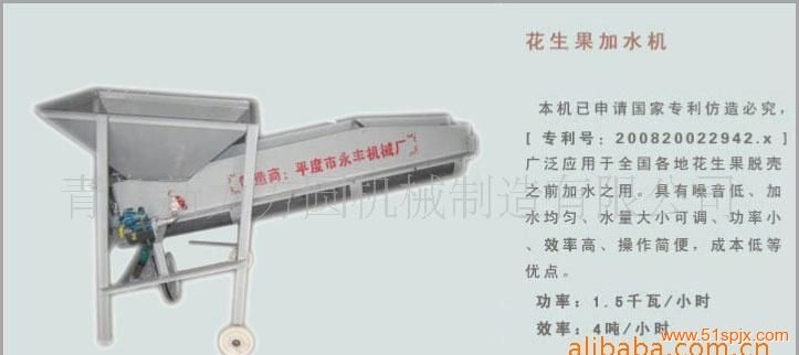 本產品廣泛用于全國各地花生果脫殼之前加水之用。具有噪音低、加水均勻、水量大小可調、功率小、效率高、操作方便,成本低等優點。