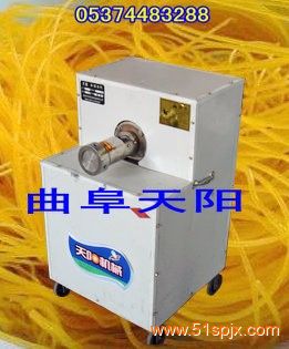 天陽牌雜糧面條機(玉米面條機),是借鑒面食機械行業內的先進技術研發而成,天陽牌雜糧面條機生產的雜糧面條,有韌性、彈性、久泡不散、久煮不斷,與普通面條一樣,可煮、炒、涮、涼拌等,口感滑爽,味道鮮美,人人叫好。眾所周知,五谷雜糧富含多種營養成分,可以調節人體新陳代謝,增強肌體抵抗力。能有效地防止現代人飲食精細化,魚肉、果菜等在飲食結構中所占比例增加,飲食失調,而導致的各種疾病(富貴病)。因此,重建合理飲食習慣,粗糧、雜糧、粗細搭配對健康生活有相當意義,天陽牌雜糧面條機,讓你放心辦雜糧面條加工廠,用天陽雜糧面條機加工各種雜糧面食錢景好,是迎合巨大市場的最佳創富設備!雜糧面條機結構精良,一機多用,能充分利用物料研磨過程產生的熱能,生面投入,熟面產出,生產玉米面條、高粱面條、小米面條、配方面條,以及粉絲、米線等。操作簡單,移動方便。生產工藝易學易懂,一人即能操作。雜糧面條機型號與價格:TYG-A型時產50-60公斤,動力2.2KW(220V),價格2300元,TYG-C型時產100-120公斤,動力7.5KW,價格3600元。TYG-D型時產150-200公斤,動力7.5-11KW,價格7580元。另可根據客戶需要配備玉米脫皮機,磨粉機,拌面機等。售后服務:1、購雜糧面條機免費培訓機器操作維修保養技術,提供各種雜糧面食生產工藝配方。2、兩年內雜糧面條機出現質量問題,保修包換。天陽機械程程感謝您關注我們的雜糧面條機,若您希望獲得進一步的了解,如最新雜糧面條機價格、最新雜糧面條機規格型號等更多信息,歡迎您隨時聯絡我們QQ2384314408或打電話13791763698 13181307932。http://www.sdtianyang.com/showcp.asp?id=3