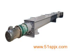 LS型螺旋輸送機是利用旋轉的螺旋將被輸送的物料沿固定的機殼內推移而進行輸送工作,頭部及尾部軸承移至殼體外,吊軸承采用滑動軸承設有防塵密封裝置,軸瓦一般采用粉末冶金,輸送水泥采用毛氈軸瓦,吊軸和螺旋軸采用滑塊連接。