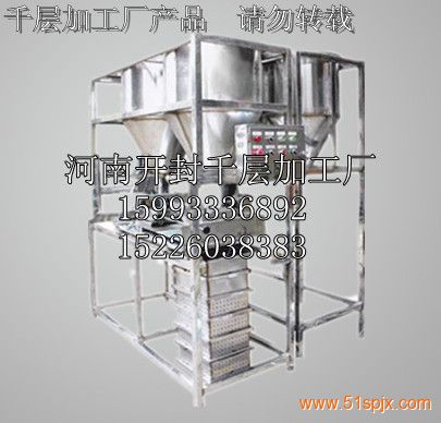 6.機械帶有包布下落過程,電子眼自動監控系統,自動調整潑腦后包布上下升降,可保證產品部流腦,保持豆腦的含水性,同時完全可以保證可以制厚薄不同的豆皮、千張、百葉