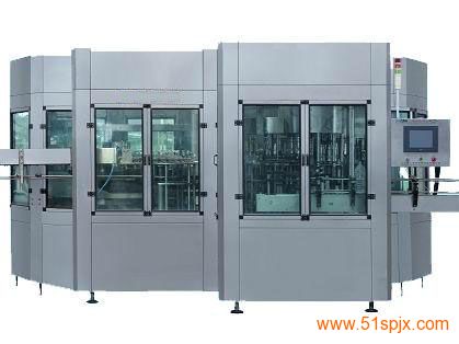 三合一主機由洗瓶機、灌裝機、旋蓋機、機架、封窗、主電機及傳動系統、瓶傳輸細、理蓋器及電氣控制系統等部件組成。