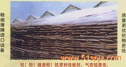 新開發茂金絲糧食專用膜:此膜以尼龍塑料復合為主,加入茂金絲精制而成,其拉力強度、氣密性均相當于國內普通糧膜的3-5倍,具有無毒透明、耐高溫低溫、防潮防濕、易熱封等特點,是您儲糧密閉、倉底鋪墊、糧面覆蓋的理想選擇。還可根據用戶需求提供聚氯乙烯透明糧膜、各種顏色不透明和及薄膜連續自動封口機。