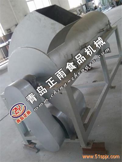 將燙好的豬爪從加料口進入該機后,由主軸帶動撥動橡膠板撥動豬爪在機內轉動,通過周邊螺紋鋼對豬爪磨擦而進行脫毛,同時水管自動噴水,從而達到刨毛清洗豬爪的效果;豬爪可連續進入,脫毛后自動排出,停機后將豬爪放入清水池,重復操作,脫毛效果更加理想;脫毛后的豬爪由出料口自動排出,這樣減輕了工人勞動強度,提高了工作效率。