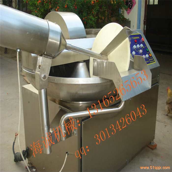 斬拌機在利用斬刀高速旋轉的斬切作用,將肉及輔料在短時間內斬成肉餡或肉泥狀,還可以將肉、輔料、水一起攪拌成均勻的乳化物。 采用變頻技術,刀速調整范圍大,具有高效節能的功能,刀速、鍋速、斬刀與斬鍋的間隙、斬刀材質和刀的硬度設計最為合理。斬拌機刀速、鍋速、斬刀與轉鍋的間隙達到最佳的組合,使斬切產品細度好、升溫小、斬拌時間短,特別是由于乳化處理,使腸類產品的細密度與彈性大大增強,最大程度的提高了肉制品乳化效果、彈性及細膩度。