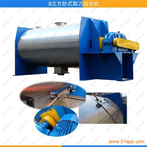 該機由傳動機械,臥式筒體,犁刀和飛刀組等四部份組成。旋轉的飛刀強烈拋散,在犁刀和飛刀的復合作用下,從而在極短的時間內達到均勻的混合。
