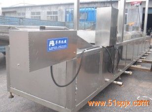 電加熱油炸流水線(純油刮渣)采用全不銹鋼加工制造,油炸溫度自控,可根據炸制產品不同設置溫度,炸制時間可調根據產品炸制要求設置時間;獨特的產品輸送系統、排渣系統、油循環系統、排煙系統、電控系統等組成。采用網帶輸送產品變頻或無級調速。廣泛應用于肉制品,肉塊、炸雞翅、、鍋巴、水產、蔬菜、面食等油炸食品加工。