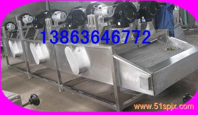 春秋翻轉式風干線先將需要風干的物料經過網帶傳輸進入,經過多次翻轉,以實現物料的多面受風及其受風得得均勻性,通過吹風機的高壓風力將食品冷卻或者將表面水份吹干,風嘴誠風刀狀,有效地提高了風量壓力,使物料水份在短時間內吹走或者蒸發,便于下工序儲藏或者深加工。