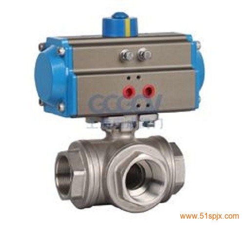 三通螺紋氣動球閥是由雙 (單)作用氣動活塞式執行器和三通球閥組成。其閥體分為L型和T型。氣動活塞式執行器采用低摩擦材料做成軸承套,缸體內外表面經硬質陽極氧化防腐處理,大大提高了氣缸的使用壽命。本產品使用性能穩定,用于石化、冶金、電力等工業部門。