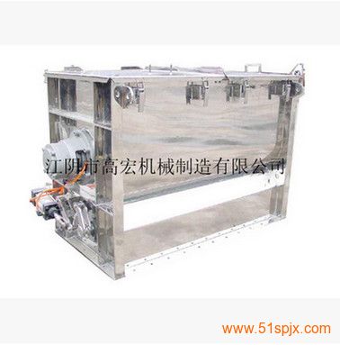 螺帶混合機是高效、應用廣泛的單軸混合機,半開管狀筒體內的主軸上盤繞蝸旋形式且成一定比例的雙層螺帶。盤旋的螺旋帶依附主軸運轉,能推使物料隨螺旋帶蝸旋方向行進。混合機臥式筒體底部中央開設出料口,確保筒體內物料出料無死角。