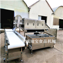 大姜先進入高壓噴淋水槽,在高壓噴淋水流下大姜被充分打散、翻滾、清洗、滾杠傳送,從物料表面洗脫的泥沙沉入底部隔離倉,不會發生回流造成二次污染。大姜進入氣泡清洗裝置,漂浮在水中的雜物、小蟲通過去雜機構清理掉,洗凈的大姜由出水口再經噴淋清洗送至下道工序。該清洗機能有效去除大姜表面的污染物、農藥,且對大姜損傷很小。有效的清除蔬菜表面的污染物而且可以縮短清洗時間,省時、省力、省水、洗潔凈高、提高生產效率。