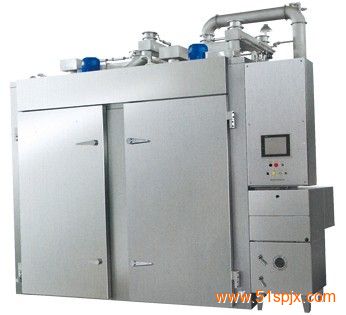 1.爐體:爐體內部所有構件及外壁均采用不銹鋼制造,耐腐蝕。將制品掛在掛車上,送入爐體內,關好爐門,即可按設定工藝參數進行蒸煮等工。