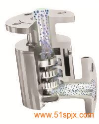 第二級由轉定子組成。分散頭的設計也很好的滿足不同粘度的物質以及顆粒粒徑的需要。在線式的定子和轉子(乳化頭)和批次式機器的工作頭設計的不同主要是因為在對輸送性的要求方面,特別要引起注意的是:在粗精度、中等精度、細精度和其他一些工作頭類型之間的區別不光是指定轉子齒的排列,還有一個很重要的區別是不同工作頭的幾何學征不一樣。狹槽寬度以及其他幾何學特征都能改變定子和轉子工作頭的不同功能。