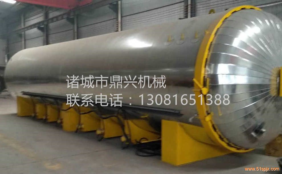 蒸汽硫化罐溫度、壓力、時間采用自動控制,性能穩定可靠,使用方便快捷,是一種傳統的硫化罐設備。設計壓力0.6-3.0Mpa,設計溫度150-220℃,直徑600-5000mm,長度1000-60000mm之間,根據產品技術要求單獨為客戶設計定做。蒸汽有罐底進入,在罐底設置蒸汽進口由自動閥門控制,蒸汽擴散管豎向在罐底排列,擴散管中小口(3mm、4mm、5mm)按一定規則和角度彌補排列,確保蒸汽進入到罐內后溫度均勻向四周擴散,防止蒸汽擴散不均造成的產品質量不同。設定工作程序后,控制系統自動進行升溫、保溫、硫化等工作,硫化結束后發出聲光報警音并自動停止工作。