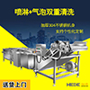 通過高壓旋氣泵使水發(fā)生翻滾、“沸騰”,使物料表面的塵土、泥沙迅速脫離主體,通過不銹鋼網帶,將清洗后的物料輸入到下道工序,在出料端上部裝有多個扇形噴嘴,對蔬菜進行二次清洗,達到良好的清洗效果。