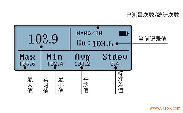 3、可同時顯示實時值,最大值,最小值,平均值,均方,均方越小越均勻,直觀明了。