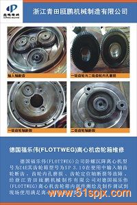德國福樂偉公司臥螺沉降離心機型號為Z4E其齒輪箱號為SP3.10在使用中輸入軸齒輪斷齒。齒輪內孔磨損、齒輪定位軸斷裂等故障。經我公司對德國福樂偉離心機齒輪箱內部件測繪及制作調試到現場使用滿足離心機的運行要求。