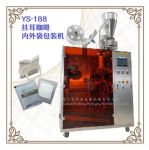 [摘要]YS-188 掛耳咖啡內外袋包裝機一、特點:1、適用于咖啡粉、小顆粒狀物料。2、采用特定的掛耳式濾網、三邊封口、直接掛在杯子邊緣,咖啡沖泡效果更好,且袋形美觀,目前國外市場非常流行。3、本機具有自動完成制袋、計量、充填、封合、分切、計數、打印批號等功能。4、內袋為無紡布掛耳袋,沖泡方便且衛生。封口采用先進的超聲波封口,封口效果好,袋形美觀。5、包裝材料:...