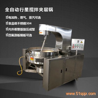 行星攪拌炒鍋用途:主要用于帶有一定粘度的物料的攪拌和炒制,這種物料加工有其特殊性,如果不用行星攪拌炒鍋在加工的過程中,極容易出現(xiàn)粘鍋糊鍋的現(xiàn)象,這樣費時費力費物料,即便能夠加工出來,口感也不好。行星攪拌炒鍋大的特點就是攪拌的過程刮底刮邊,360度無死角攪拌,使得即便是粘性物料也不會出現(xiàn)在粘鍋糊鍋的現(xiàn)象,因此如果要加工的是粘性物料,要選行星攪拌炒鍋;比如帶肉的醬料、粘稠的火鍋底料、各種需要翻炒餡料、阿膠制品、熬糖等。