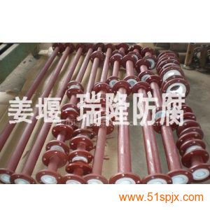 制造工藝:首先采用進口PTFE粉末,推(擠)壓成管子,然后將它強行拉入無縫鋼管(襯管外徑略大于鋼管內徑1.5-2mm),形成無間隙緊襯。為了消除壓力,將它放在爐中,加溫至180℃進行恒溫處理,使之適應在180℃以下的溫度中使用。同時,推(擠)壓管的軸向抗拉強度比纏繞管明顯要好。此管道具有理想的耐正、負壓能力。