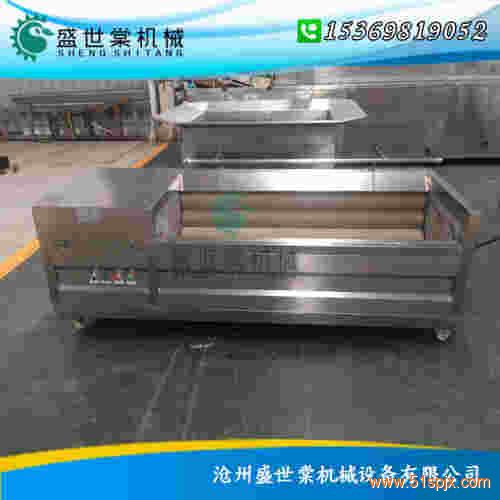 設備介紹:盛世棠橙子清洗機,毛刷噴淋清洗機.多功能蔬菜清洗機洗水經過過濾后,由循環沖洗泵加壓至進料口噴管回沖,噴管方向可調,物料被噴管噴出的高壓水再次沖洗,并朝著出口方向漂移,出口處置刮板提升機,刮板提升機的速度可調(調節刮板提升機速度到所需的生產能力),將沖來的果蔬送至下道工序(可根據用戶要求在出口刮板提升機上加噴淋管,進一步進行噴洗)。也可根據用戶不同的物料,加工不同的提升結構