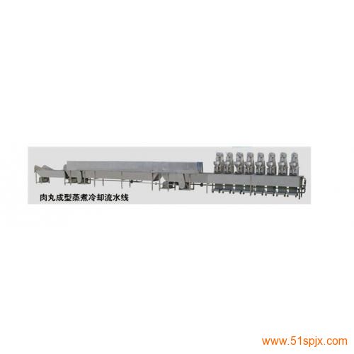 配置:成型流水線4500mm,蒸煮流水線4500mm,冷卻流水線3000mm,各配5臺肉丸機。