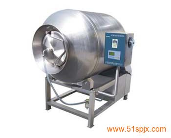 滾揉機是利用物理沖擊的原理,讓肉在滾筒內上下翻動,相互撞擊、摔打,達到按摩、腌漬作用,使肉均勻的吸收腌漬,提高肉的結著力及產品的彈性,通過滾揉、按摩能使肉體蛋白質分解成水溶性蛋白,易被人體吸收,同時能使添加料(淀粉等)與肉體蛋白質互為融合以達到肉質變嫩,口感好,出口率高。本機具有肺呼吸功能,讓產品在滾筒內膨脹、縮小了往復運動,改善了肉組織的結構,提高了切面效果。