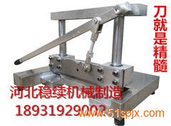 工作臺面是不銹鋼的,有視頻演示,機器刀片長度3,5分米,刀具是錳鋼鍛打經熱處理不會崩口卷刃的,本產品工藝精良,堅固耐用,質量一流,刀具鋒利,結構簡單,使用方便,可輕松鍘切排骨,大棒骨,豬蹄,凍肉及其它固體類食材。可對豬牛羊排骨、大骨頭、筒骨等快速切 是目前唯一一款多功能切骨機機器。
