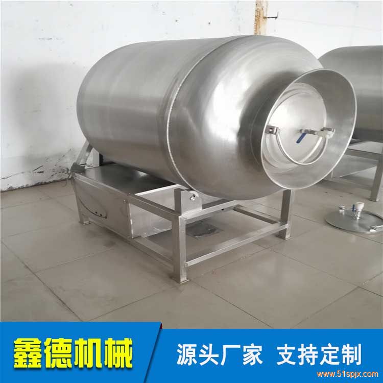 滾揉機是利用物理沖擊的原理,讓肉在滾筒內上下翻動,相互撞擊、摔打、達到腌漬作用。滾揉機可以使肉均勻的吸收腌漬,可以提高肉的結著力及產品的彈性;滾揉機可以提高產品的口感及斷面效果;滾揉機可以增強保水性,增加出品率;滾揉機可以改善產品的內部結構,節能。滾揉機整機采用不銹鋼制造,結構緊湊,滾筒兩端均采用旋壓式封帽結構,增加滾筒內的摔打空間,使滾揉產品的效果均勻,噪音小,性能可靠,操作簡便,使用效率更高。