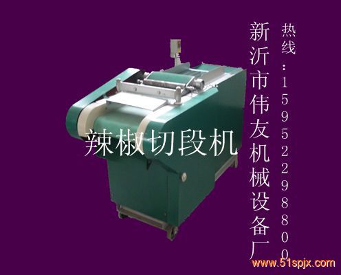 辣椒切圈切段機 本機采用輸送帶自動將辣椒輸送到刀口模擬手工完成切圈、切段工作,可直接將干鮮辣椒由切刀口任意調整橫切成規格為長2mm—20mm的辣椒圈、辣椒段。它使用220v電源,配套1.5kw電機,重約100kg,每小時可加工100-400kg。分小、中、大型。實為各辣椒加工企業,果蔬加工廠等進行辣椒深加工的首選機械。具體詳情請電詢 15952298800