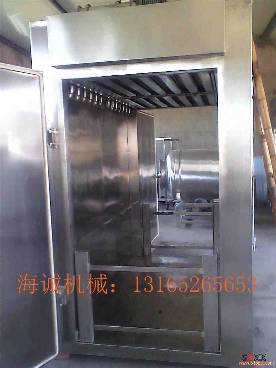 爐體:爐體內部所有構件及外壁均采用不銹鋼制造,耐腐蝕。將制品掛在掛車上,送入爐體內,關好爐門,即可按設定工藝參數進行蒸煮等加工。