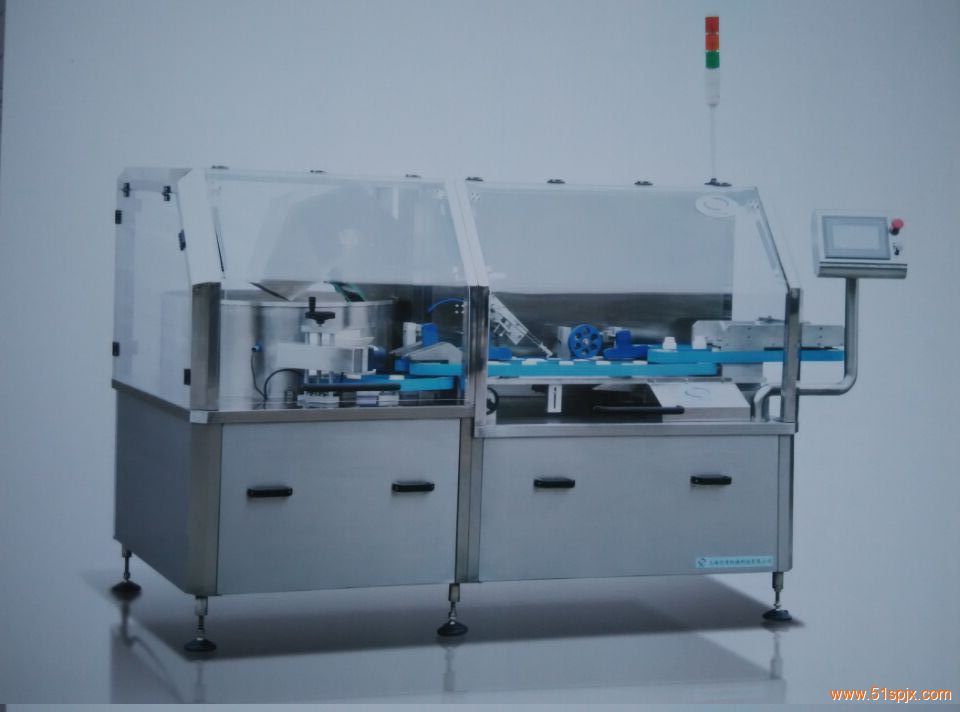 適用于藥品、保健品、化妝品、文具用品、音像制品等行業中的各種盒式物品的單件或集合物品的自動包裝。如針對盒裝藥品、撲克條包香煙、盒裝VCSD、磁帶等單件或集合物品的包裝、特別針對尺寸物品的包裝。其動作均為汽缸驅動,伺服電機下膜,可任意調節尺寸,具有運行穩定可靠,封口牢固平整等特點:防偽易拉線為U型易撕口;機體由進口鋁箔金機架和封閉式玻璃護罩組成、具有外形美觀,操作簡單方便。