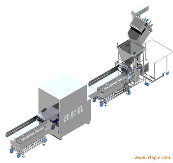 系統(tǒng)組成 玥力桶車提升機上料 玥力滾筒下料斗均勻出料 玥力振動輸送機 注射機入口端振動輸送機 產(chǎn)品分離鋪平,均勻進料 抖去多余血水,減少注射液污染 注射機出口端振動輸送機 收縮針孔,減少后道工序中注射液流失 促進注射液的吸收 抖去表面多余注射液