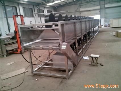 3、本機輸送部分采用SUS304不銹鋼網帶,運行平穩、使用壽命長等特點,符合食品衛生要求。
