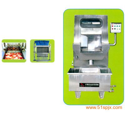 鹽水注射機采用不銹鋼材料制作,設計合理。送肉鏈條可全盤托出,清洗方便,針頭排列為單針單管,設有自動保護裝置,當注射針頭碰到硬物時,注射針自動彈起,不受損壞,達到了注射的肉無死角。 增加保水性,提高出品率; 提高產品的柔嫩性和結構穩定.