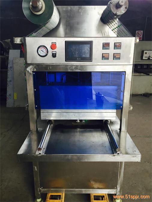 系列真空托盤封口機采用啟動真空封口方式,電器采用歐姆龍可編程邏輯控制器,具有自動抽空、熱封、切膜機廢膜回收等功能,本機采用智能數字顯示溫度控制風口溫度。溫度誤差小于正負2,封口強度高,密封性好。機身不銹鋼設計,符合相關的食品衛生標準。設備的執行零部件采用氣動控制系統,簡化了機械結構,故障率明顯降低,機器的運轉更加平穩、安全,封口美觀,大大提高了設備的生產率和使用壽命。